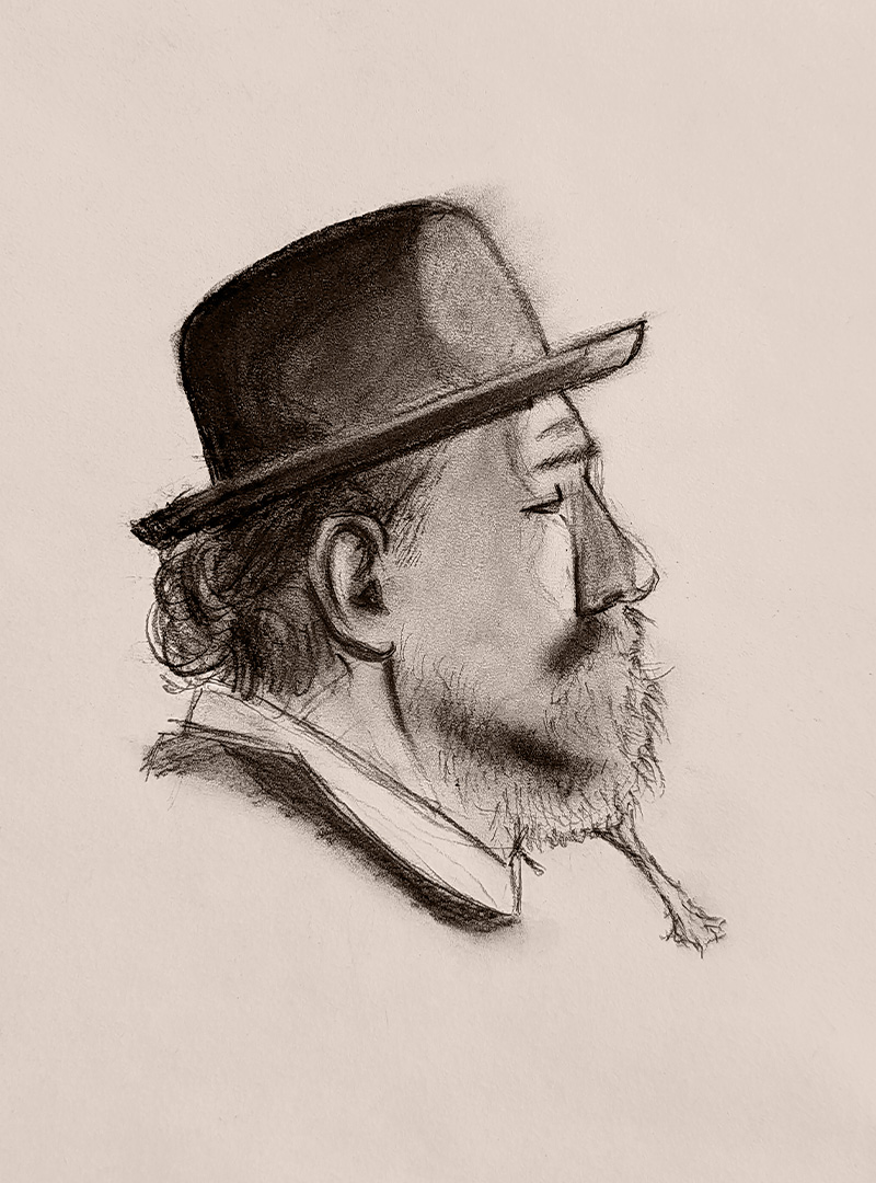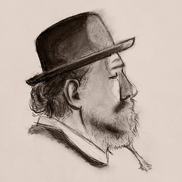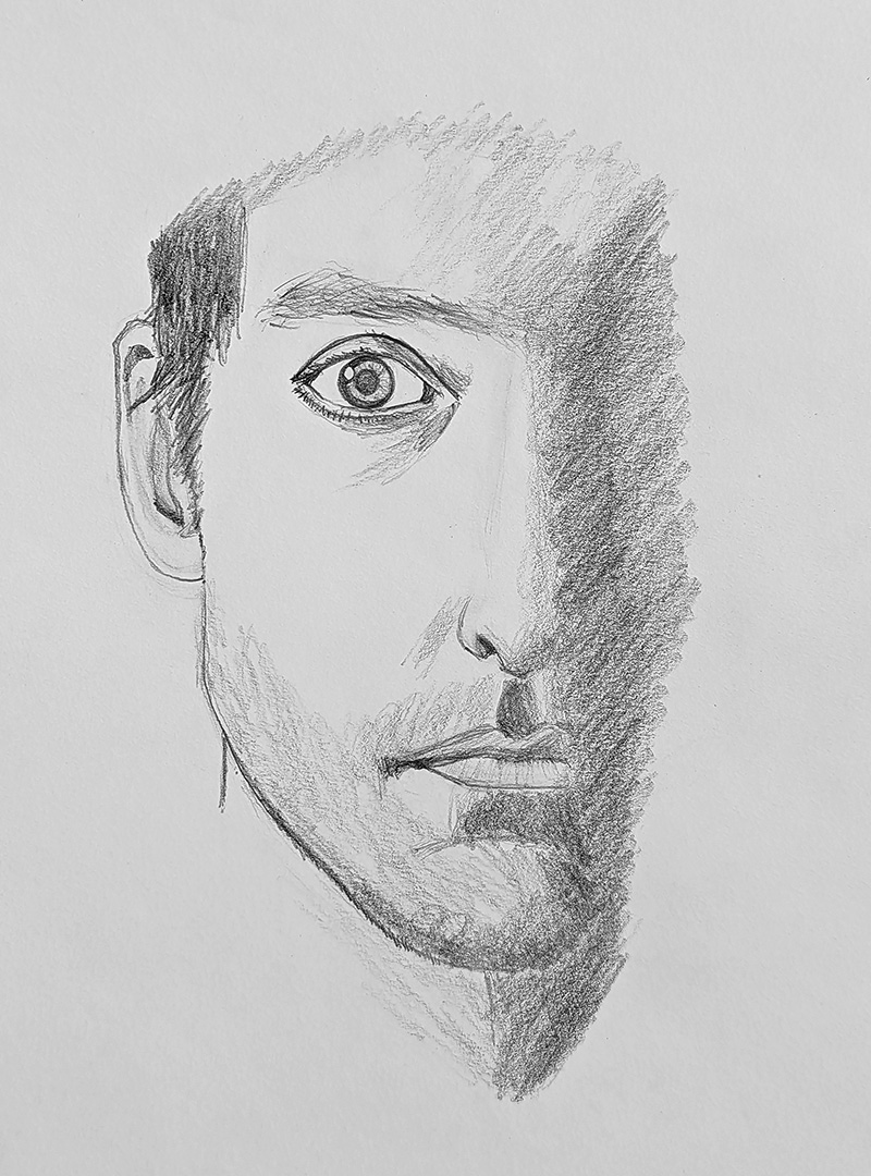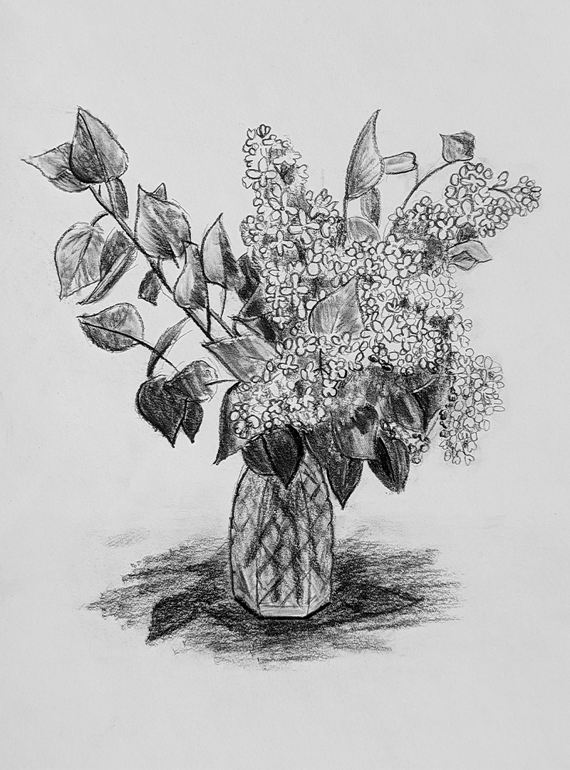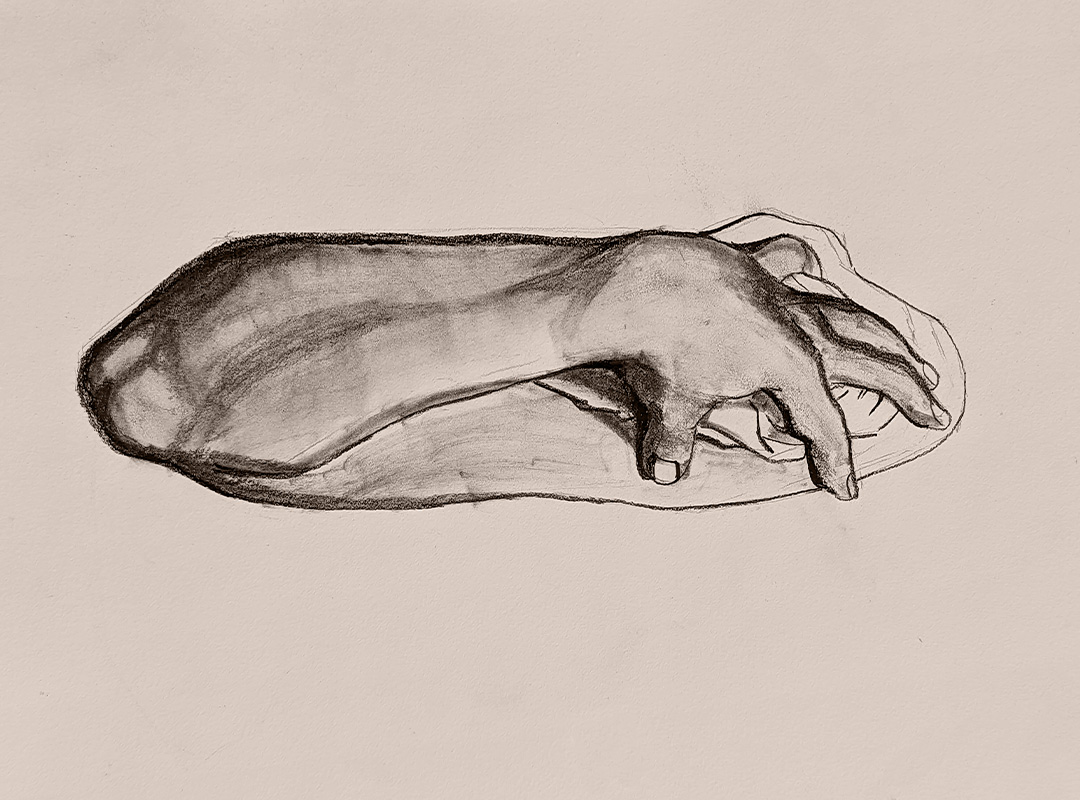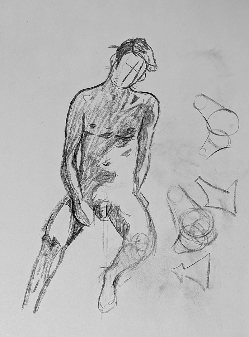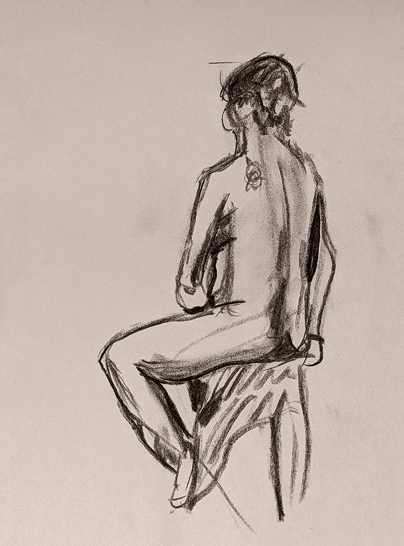 A selection of graphite and charcoal drawings.